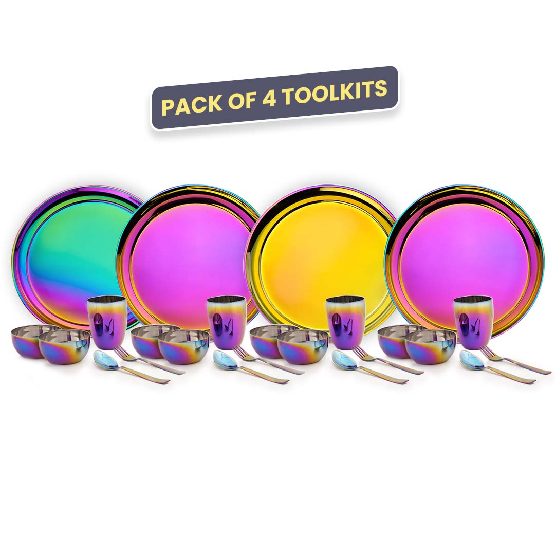 Tackle the challenges of raising healthy families in a plastic-filled, throw-away world. Choose Wellthya’s premium steel dishes with vibrant titanium rainbow coatings safe, durable, and eco-friendly.