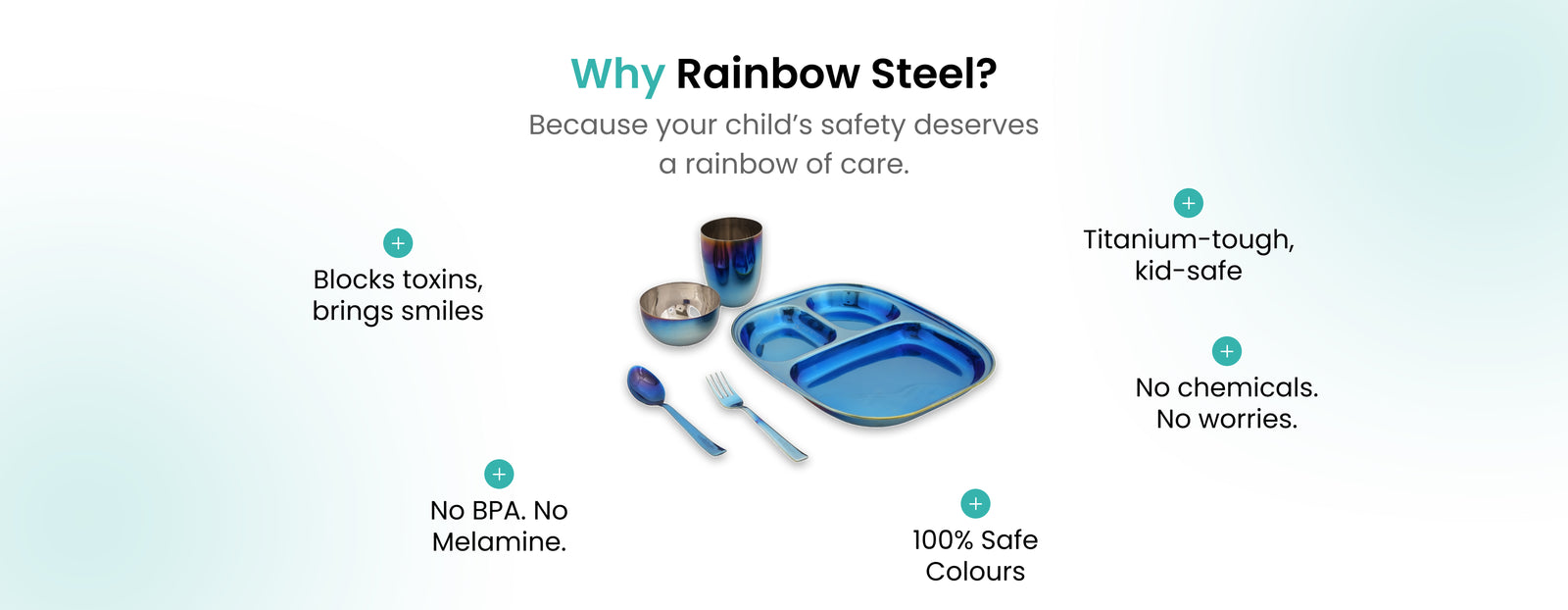 Tackle the challenges of raising healthy families in a plastic-filled, throw-away world. Choose Wellthya’s premium steel dishes with vibrant titanium rainbow coatings safe, durable, and eco-friendly.