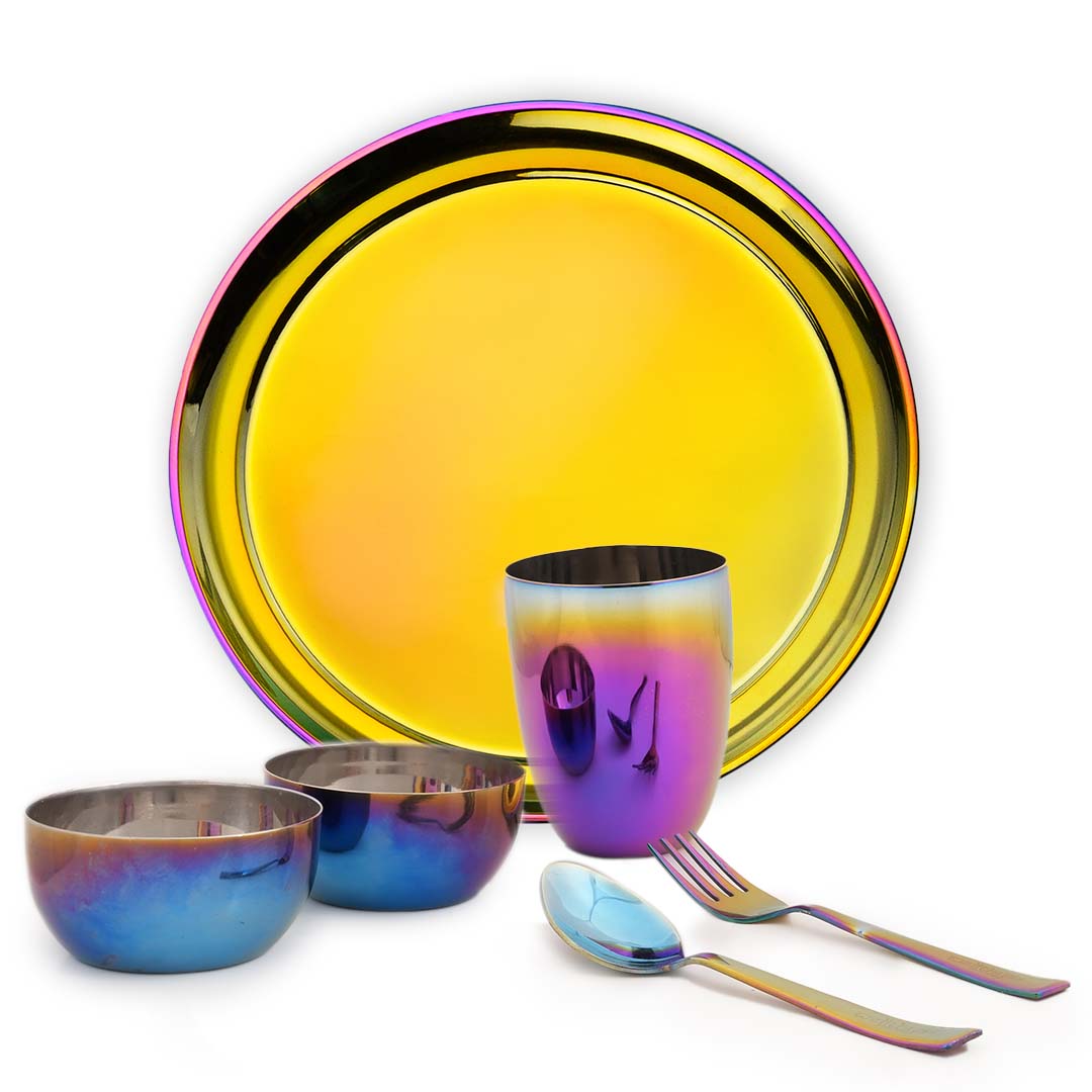 Rainbow Steel Dinnerware Set – 5-Piece Family Toolkit