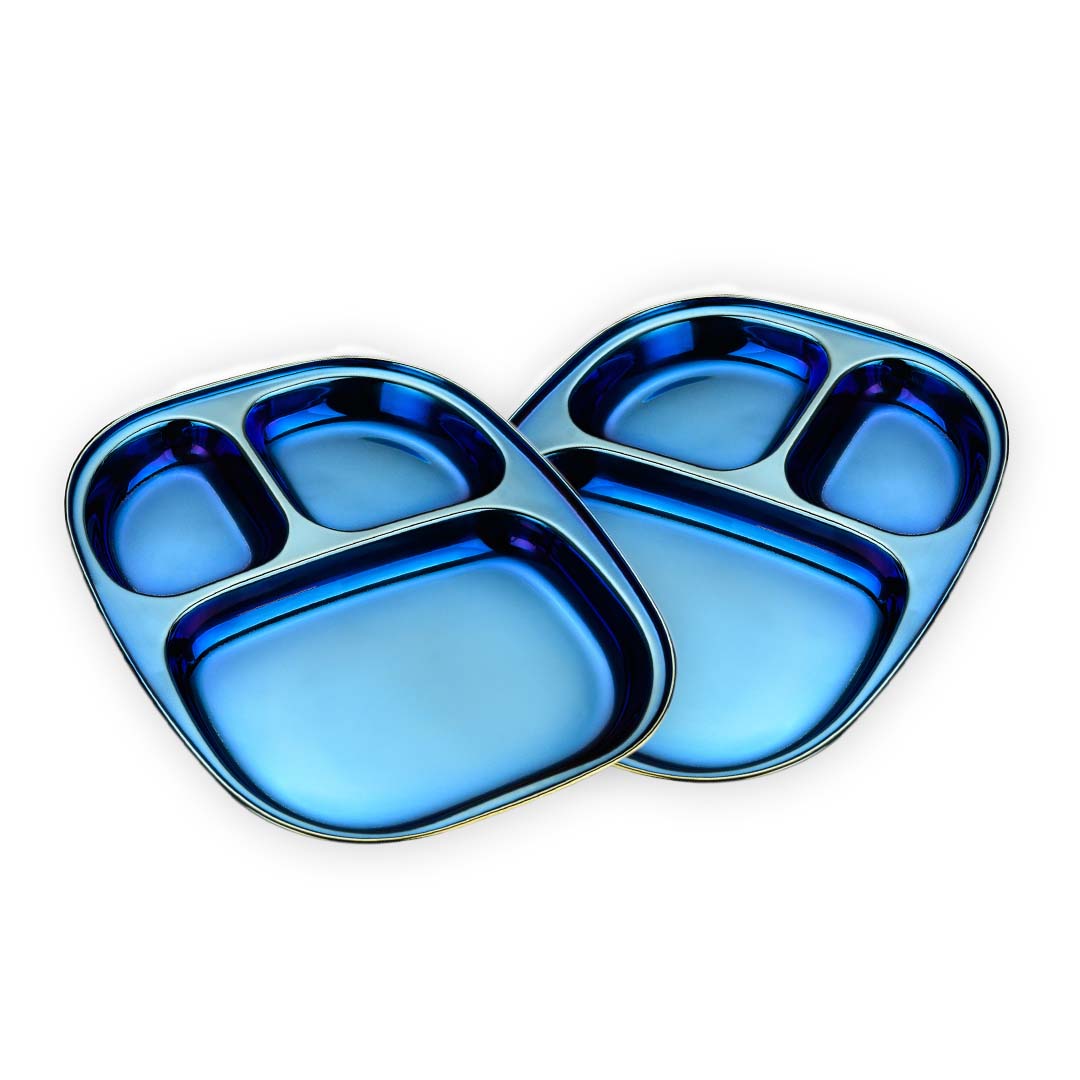 Electric Blue Steel Plates – 2-Pack Divided Dinner Plates