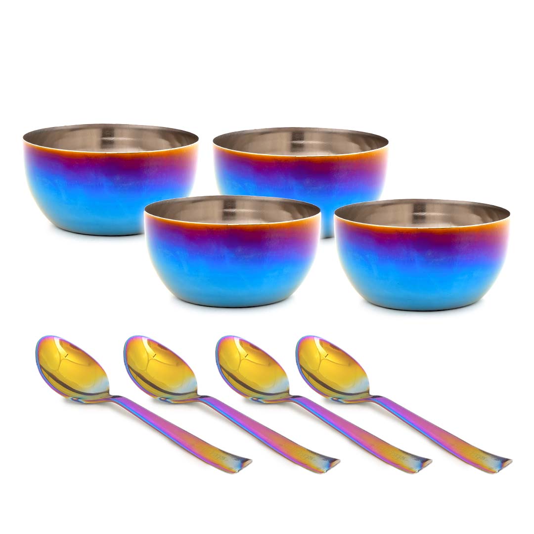 Rainbow Colour Steel Bowl Spoon Set – 4-Pack Family Collection