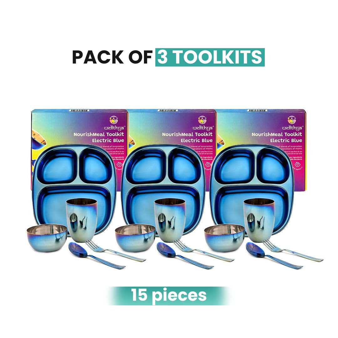 Electric Blue Steel Dinnerware Set – 3-Pack Family Toolkit