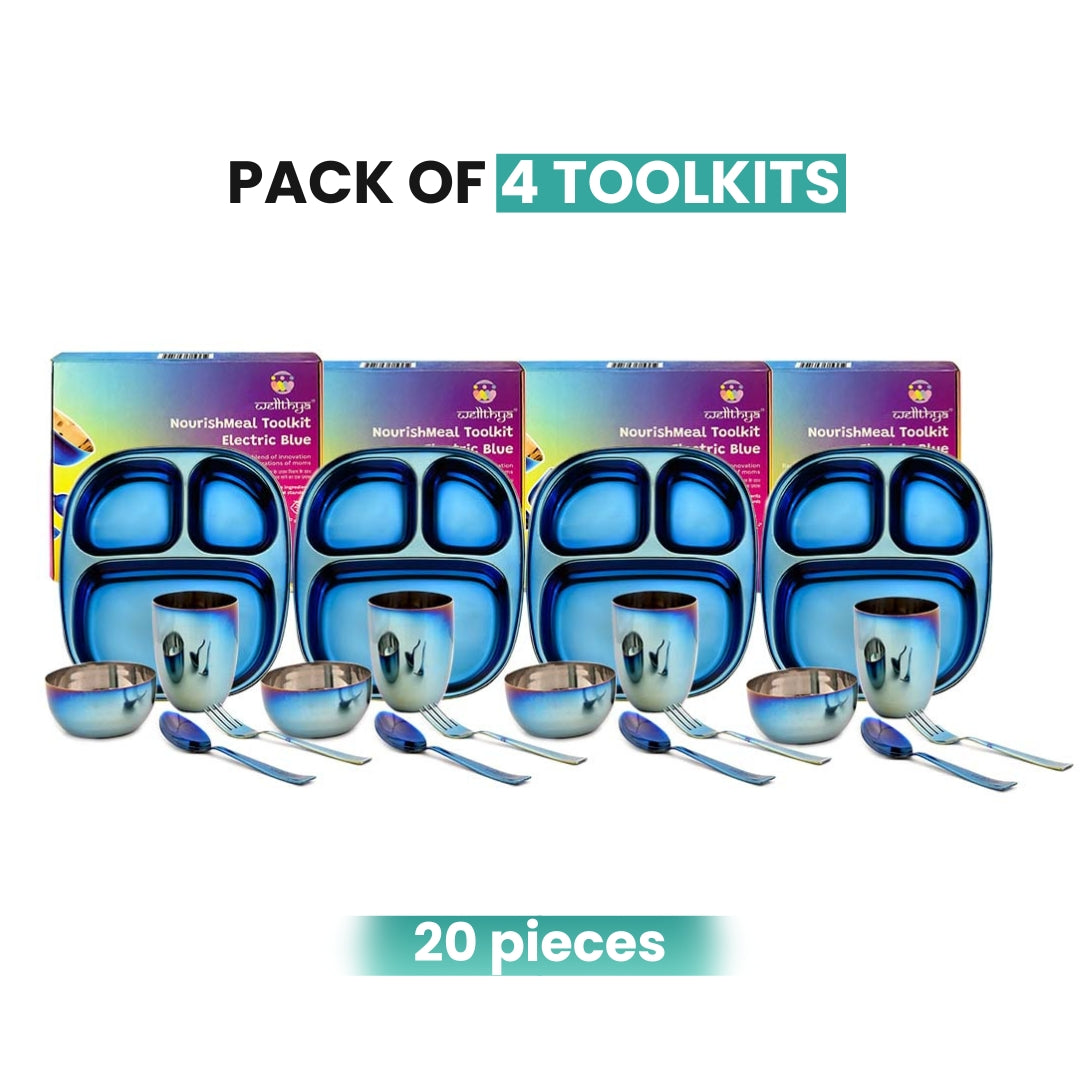 Electric Blue Steel Dinnerware Set – 4-Pack Family Toolkit