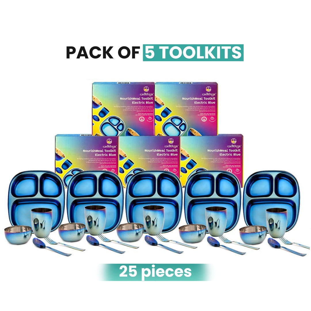 Electric Blue Steel Dinnerware Set – 5-Pack Family Toolkit