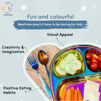 We care deeply about the world our kids will grow up in and believe in celebrating every child’s uniqueness. Sustainability, fun, and individuality can go hand in hand! Embrace this with our one-of-a-kind tableware, the first in India to offer a vibrant spectrum of rainbow colors that bring joy to every meal. Durable, dishwasher safe, and made with the planet in mind.